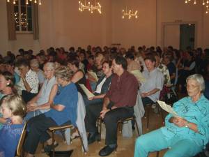 ![]() Für uns war allerdings klar: Wir wollten nicht für uns eine Feier veranstalten, sondern den Katechetinnen und Katecheten ein Zeichen des Dankes setzen. Sie stehen mit viel Engagement und Idealismus täglich im Dienst der Kirche: im Religionsunterricht; in der Kinder-, Jugend- und Erwachsenenarbeit; in Pfarreien; in Frauengruppen usw. Sie leisten alle unverzichtbare und unersetzliche Arbeit und bekommen dafür oft nur wenig Anerkennung. Ihnen wollten wir also einmal für ihre Arbeit in der Kirche Graubünden danken. Der Anlass war ein voller Erfolg, rund 140 begeisterte Konzertbesucherinnen und-besucher füllten die Aula des Constantineums und liessen sich von den ebenso feinfühligen und berührenden wie provozierenden und witzigen Texten und Melodien der feministischen Liedermacherin zum Nachdenken anregen. | ||